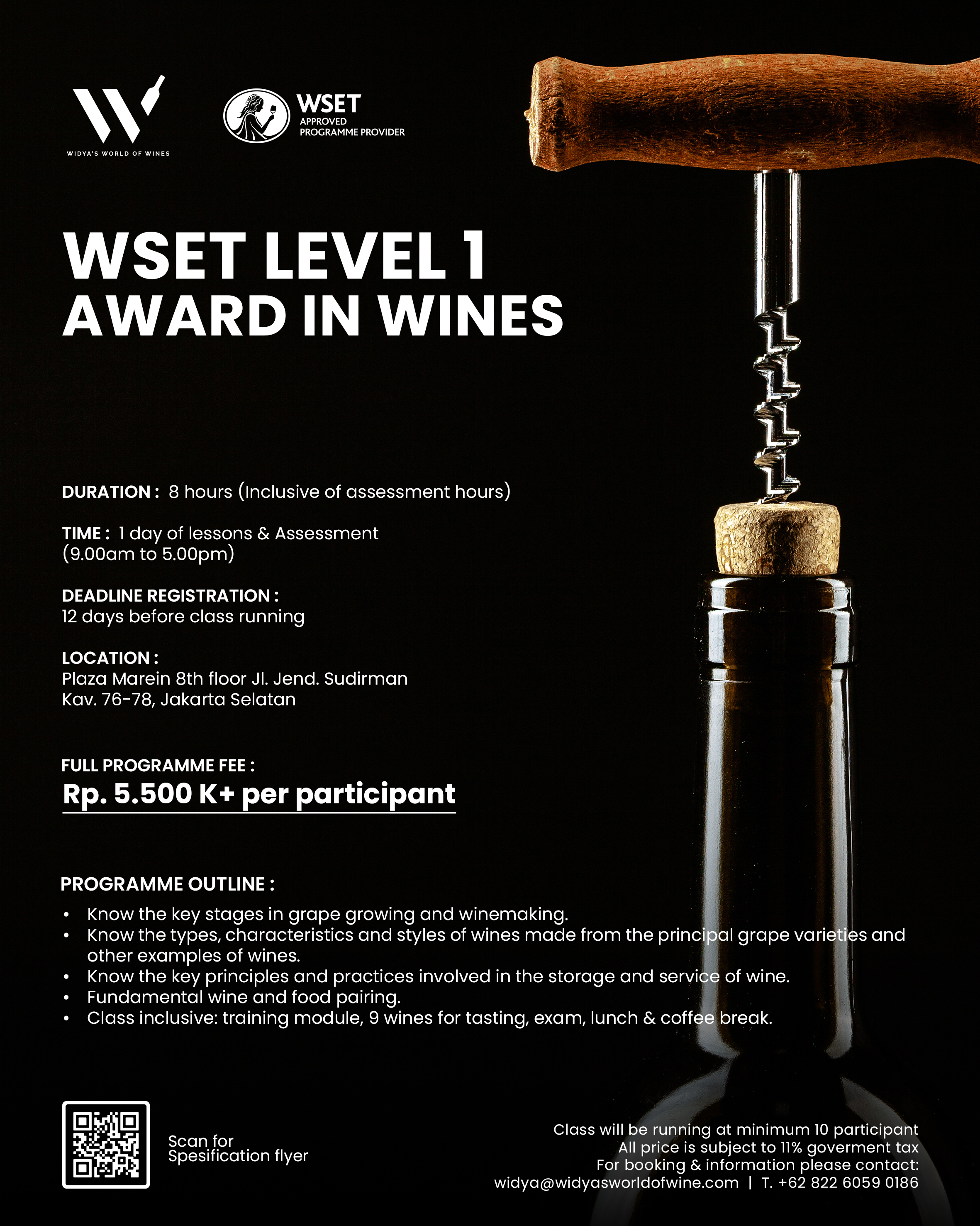 Class inclusive: training module, 9 wines for tasting, exam, lunch & coffee break